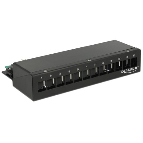 Delock patch panel, 12 portos, fekete, keystone nélkül
