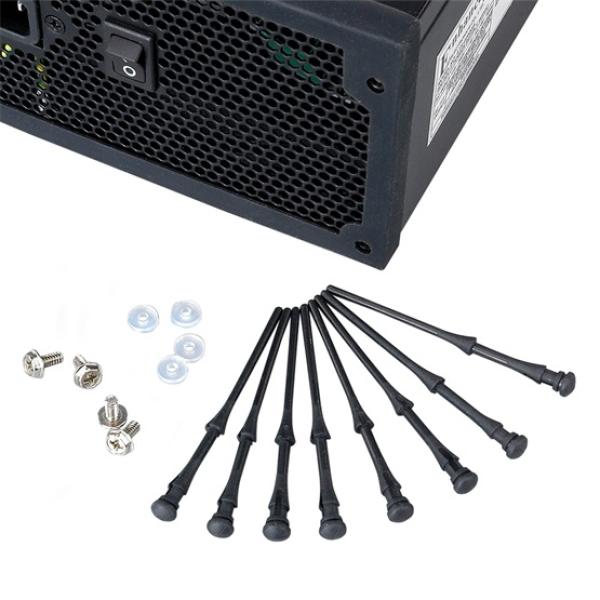 Ventillátor rögzítő: 8db, PSU tömíttés: 1db, PSU rögzítőcsavarok: 4db előre felhelyezett puha alátétekkel