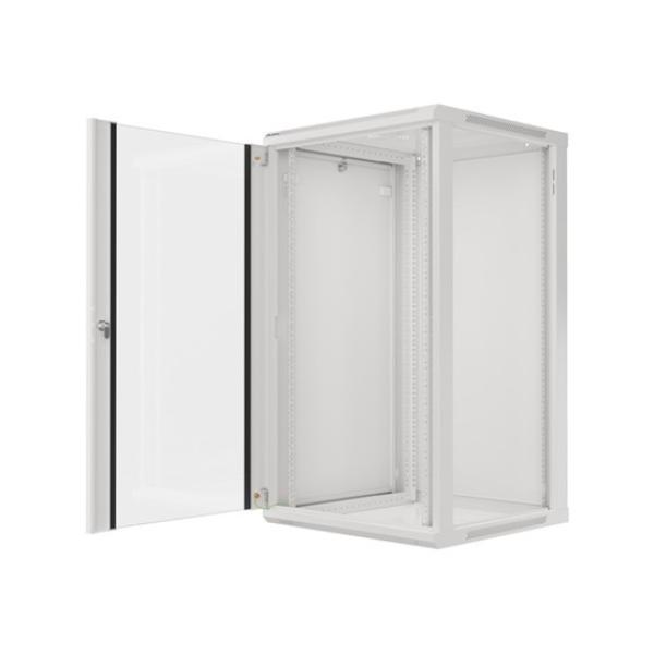 19" fali rack szekrény 22U/600X600 üvegajtó, lapraszerelt, szürke V2