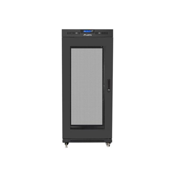 Lanberg 19" szabadon álló rack szekrény 27U/600X800 perforált ajtó, lapraszerelt, LCD kijelző, fekete V2