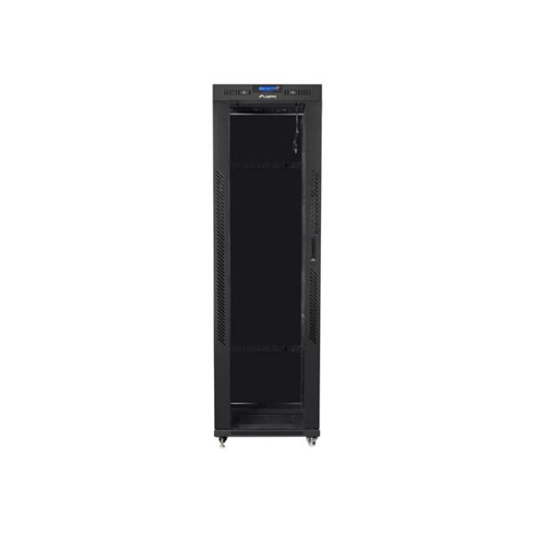 Lanberg 19" szabadon álló rack szekrény 42U/600X1000 üvegajtó, lapraszerelt, LCD kijelző, fekete V2