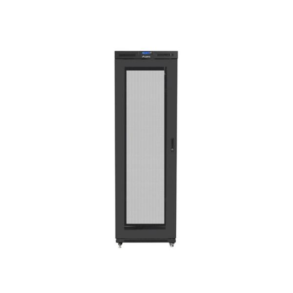 19" szabadon álló rack szekrény 47U/800X1000 perforált ajtó, lapraszerelt, LCD kijelző, fekete V2