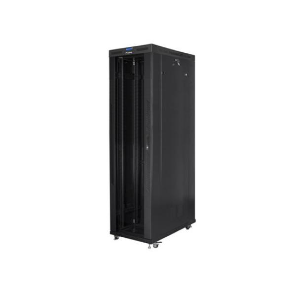 Lanberg 19" szabadon álló rack szekrény 47U/800X1200 üvegajtó, lapraszerelt, LCD kijelző, fekete V2