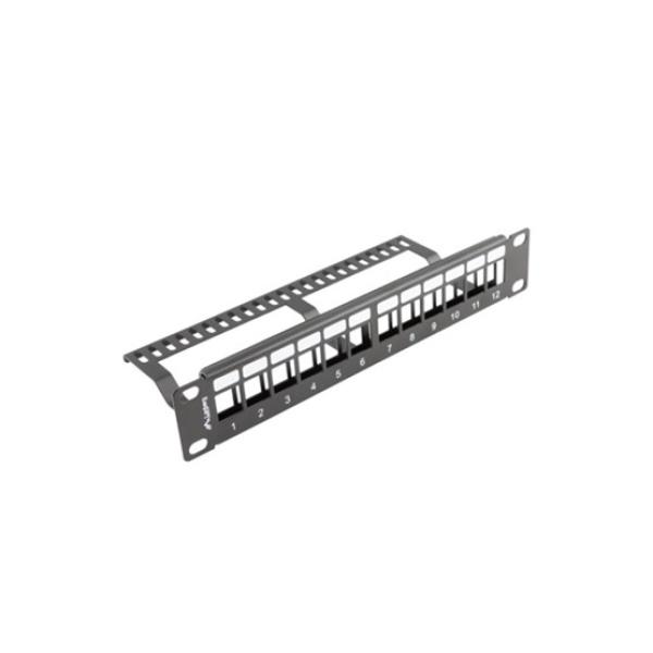 Lanberg Üres patch panel 12 port 1U 10" tehermentesítővel, fekete