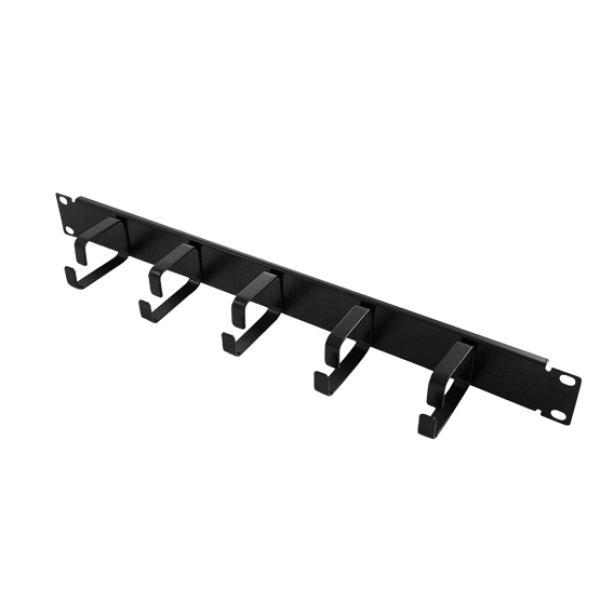 19" 1U kábelrendező gyűrűs panel, 5 fém gyűrű, fekete