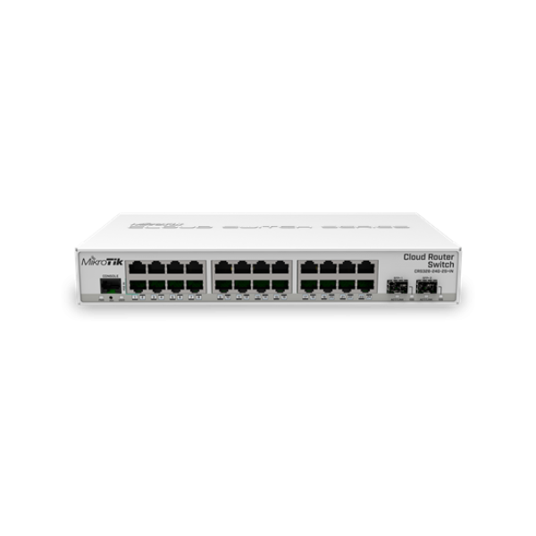 MikroTik 24xGbit port asztali switch, 2xSFP+ foglalat, dual-boot OS