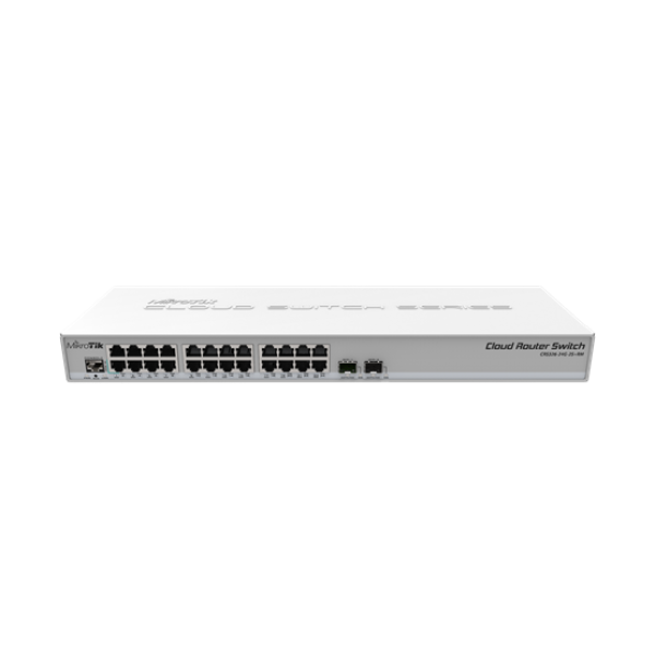 MikroTik 24xGbit port rackbe szerelhető switch, 2xSFP+ foglalat, dual-boot OS