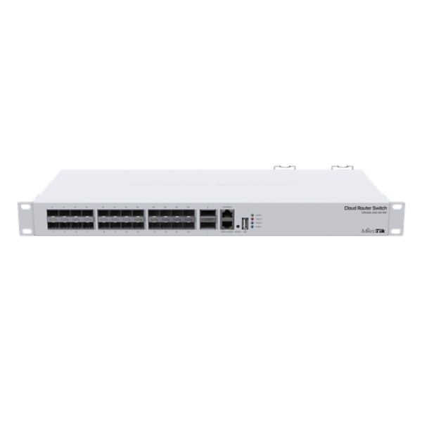 MikroTik CRS326-24S+2Q+RM rackbe szerelhető switch, 24xSFP+ foglalat, 2xQSFP+ 40 Gbit foglalat, redundáns táp