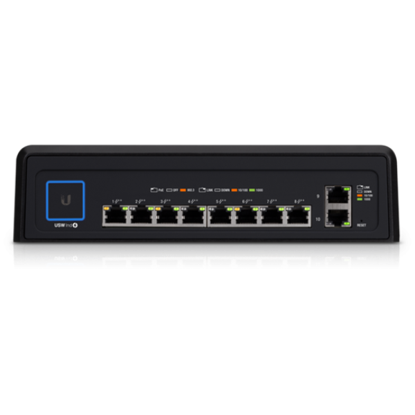 Ubiquiti UniFi Industrial Switch ipari környezetbe, 8x gigabit PoE port, 802.3bt szabvány, 2x gigabit uplink